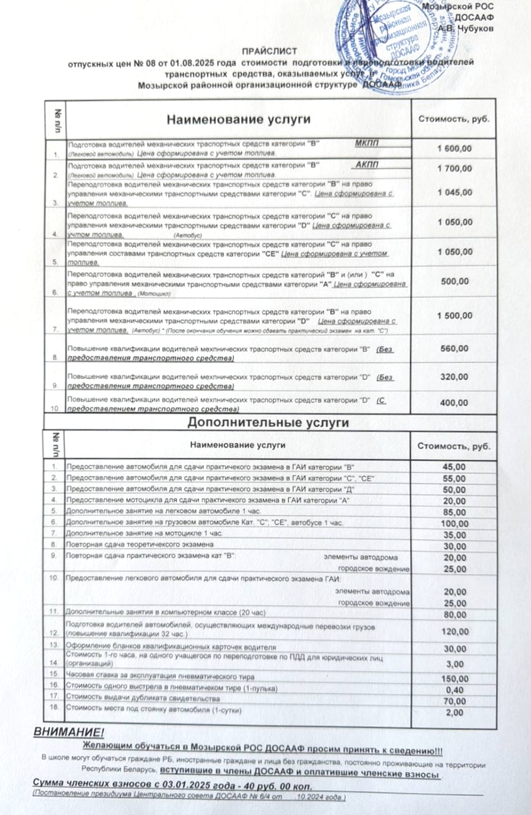 Мы приглашаем всех желающих стать курсантами нашей школы. У нас учиться не только интересно и выгодно, но и почетно! Двери Мозырской автошколы ДОСААФ всегда открыты для Вас! Добро пожаловать в нашу школу!